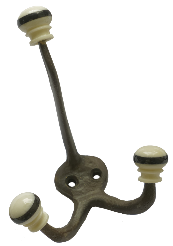 Triple Antique Brass Hook Porcelain Bone Tips